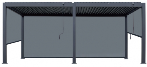 Алюминиевые верхние жалюзи с регулировкой угла наклона управляются с помощью двух ручных рукояток, позволяя без усилий контролировать уровень освещенности и тени. Линейный, минималистичный профиль перголы гармонично вписывается в современные архитектурные решения, подчеркивая стиль любого outdoor-пространства.