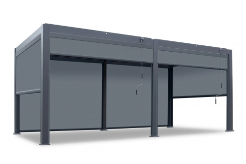 Встроенная разноцветная LED-подсветка создает уютную атмосферу в вечернее время, превращая террасу, патио или зону отдыха в многофункциональное пространство для любого времени суток. Дополнительные опции - раздвижные стеклянные панели, боковые шторы, жалюзи и экраны - обеспечивают защиту от ветра, дождя и посторонних взглядов, гарантируя комфорт и приватность в любую погоду.