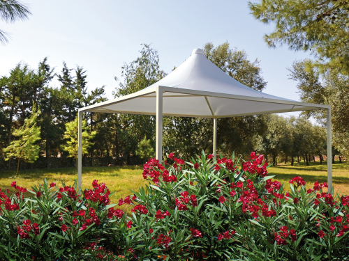 Шатер Airone Minimax отличается ветрозащитными перекладинами и очень прочным натянутым куполом. Такой шатер подходит для различных целей: для сада, для вечеринок на свежем воздухе, для обеденных зон, в качестве затененной зоны для открытого пространства отеля.