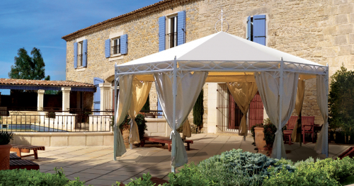 Шатер Marte выполнен из кованой оцинкованной стали с порошковым покрытием. Такая модель станет функциональным украшением сада. Под крышей шатра можно спрятаться от палящего солнца и небольшого дождя, уединиться, почитать книгу или поработать, выпить прохладительные напитки.