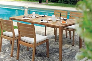 В ассортименте представлена мебель из высококачественного натурального тика. Этот материал очень практичен, так как устойчив к воздействию воды и высоких температур. Фабрика предлагает также коллекцию мебели из состаренного тика, который особенно популярен в настоящее время.