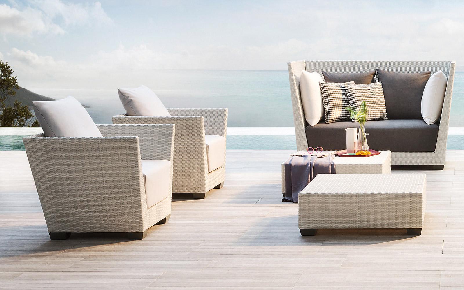 Диваны и кресла для комфортного отдыха выполнены из полиэтилена ручного плетения, имитирующего ротанг. Прочный алюминиевый каркас обеспечивает долгий срок службы.