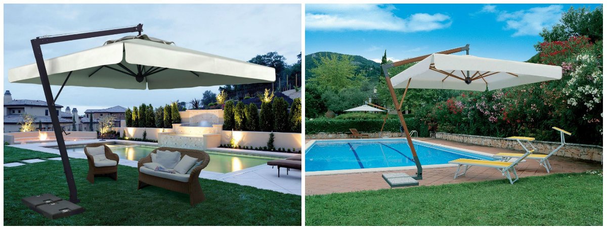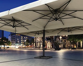А двух- и многокупольные модели Alu Poker/Double и Wood Poker/Double, каркас которых выполнен из алюминия или дерева идеально затеняют большие пространства, занимая при этом минимум площади.