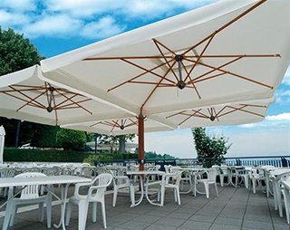 Зонты с центральной опорой Napoli Standard и Palladio Telescopic прекрасно подойдут для использования а террасах кафе и ресторанов.