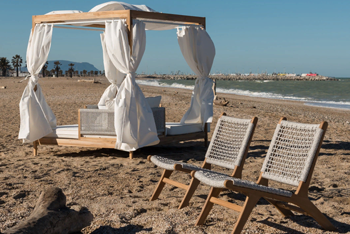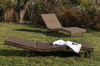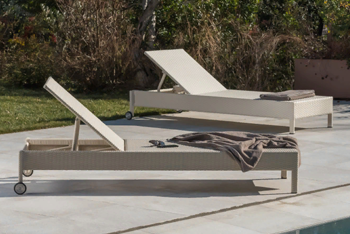 Шезлонги Sunset и Onda выполнены с алюминиевым каркасом и плетением из полиэтилена высокой плотности VIRO®. Модели оснащены регулируемой откидной спинкой и колесами, чтобы обеспечить больший комфорт и облегчить передвижение.