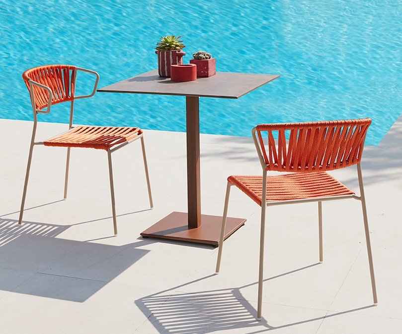 Серия Lisa Club с эксклюзивным дизайном и уникальной практичностью от всемирно известного дизайнера Marcello Ziliani. Рама изготовлена полностью из оцинкованной и матовой окрашенной стали, а сиденье и спинка выполнены из ПВХ с внутренним нейлоновым сердечником, который гарантирует, помимо удобной опоры, устойчивость во времени и к атмосферным условиям. Lisa Filò и Lisa Club - это обязательный предмет мебели для открытых пространств, неформальный, но хорошо отделанный, выполненный в изысканном сочетании структуры и рамы.
