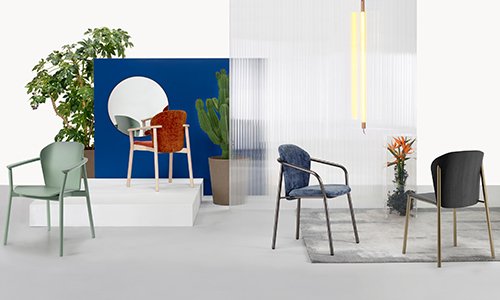 Доступные в разных комбинациях материалов стулья и кресла составляют полную и согласованную картину, уместны для частных интерьеров и пространств сферы Contract.