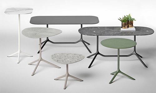 Промышленный проект, внимательный к экономической составляющей, представляет собой поистине гибкую и многогранную систему, которая дает жизнь семействам столов разных форм и размеров, подходящих и для дома, и для общественных пространств.