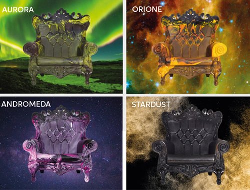 В честь 10-летия кресла Queen of Love дизайнеры Грациано Моро и Ренато Пигатти (MORO E PIGATTI) создали лимитированную коллекцию для SLIDE - Queen Loves Nature в 4-х космических оттенках. Чтобы создать Queen Loves Nature, они посмотрели вверх: романтично, безгранично, мечтательно - звездное небо было источником желаний с незапамятных времен.