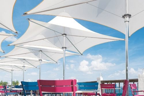 Большой известностью пользуется линейка Manta Ocean Master Max, дизайн которой вдохновлен морскими глубинами. Безмятежный комфорт этих удивительных зонтов украсит любое открытое пространство.