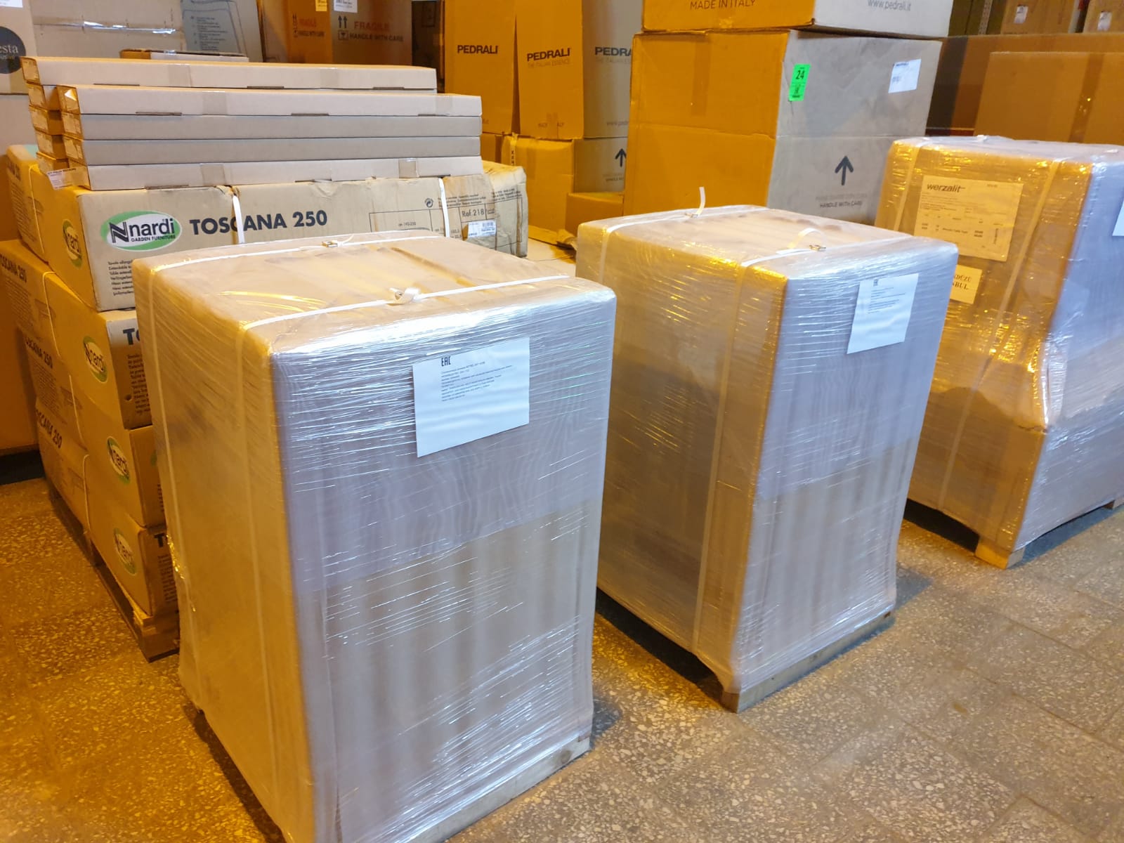 Наша компания с особой тщательностью подходит к процедуре упаковки и подготовке товара к транспортировке для обеспечения его сохранности при перевозке, погрузке, разгрузке и хранении. Для максимальной эргономичности и безопасности товара мы используем паллеты. Наши грузчики плотно укладывают товар в подходящие по размеру короба, многократно обтягивают стреч-пленкой, стягивают крепежными лентами и фиксируют на паллете.