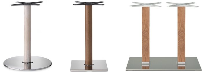 В некоторых моделях колонны выполняются из бука, древесина которого отличается высокой износостойкостью, прочностью, долговечностью, красивой естественной текстурой, экологичностью и безопасностью. Отделка может быть выполнена в различных цветах. Использование натурального бука вместе с основанием из нержавеющей стали придает изделиям классическую и вечную привлекательность с современными и уютными линиями.
