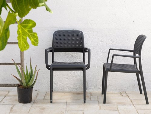 Легкое и "свежее" Bora - это удобное кресло из стеклопластика с бесшовным трубчатым каркасом и закругленным профилем. Сиденье и спинка образуют единый элемент, формы которого могут дополнить любое открытое пространство - террасу кафе, бара, ресторана, площадку возле бассейна, зону отдыха в отеле. Поступление цветов: тортора, антрацит.