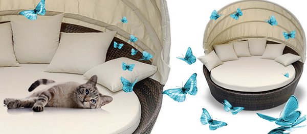 Лаунж-диван Shell&Sunshade станет комфортным островком на террасе, зоны возле бассейна или пляже, где можно расслабиться и на минуту забыть о суете и проблемах внешнего мира.