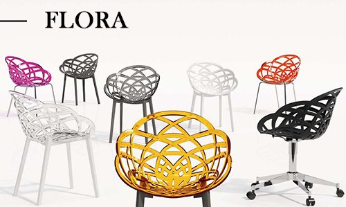 Одна из самых ярких моделей кресел Papatya, кресло Flora выполнено в комбинации двух материалов: укрепленного стекловолокном полипропилена (ножки) и поликарбоната (сиденье). Сиденье напоминает замысловатый цветок, что делает его идеальным вариантом для большинства помещений.