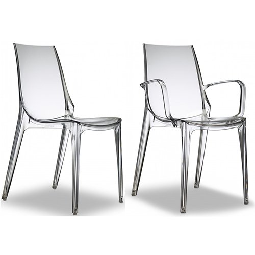 Прозрачные стулья и кресла Vanity от дизайнеров Arter & Citton выполнены из поликарбоната - прочного, легкого, прозрачного, как стекло, и ударопрочного материала. Элегантные прозрачные формы придают интерьеру уникальный вид, зрительно расширяя свободное пространство и отлично сочетаясь с другими материалами в интерьере и на открытых площадках. Более подробно о прозрачных стульях и креслах можно прочитать здесь.