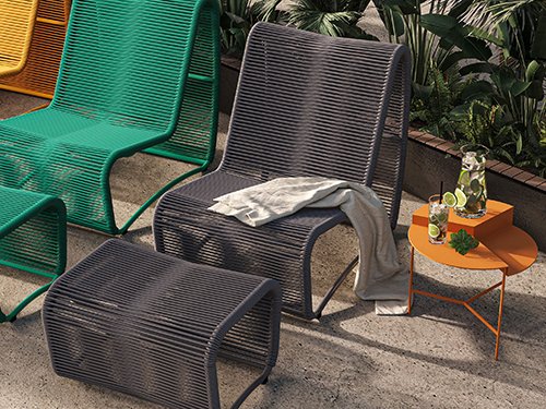 Кресло-шезлонг Бали в комплекте с пуфом-подставкой для ног обеспечивает комфортный отдых на открытом воздухе.