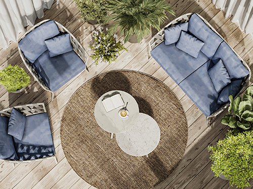 Диван Бора-Бора с плетением из полиэфирного рукава представлен в трех цветах: голубой, сиреневый и коричневый. Прочность и долговечность алюминиевого каркаса, подушки со сменными чехлами из водоотталкивающей акриловой ткани - все это создаст комфортную атмосферу не только в доме, но и на закрытой или открытой террасе.