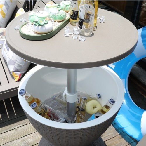 Просто заполните льдом, чтобы создать мгновенную ледяную или сервировочную станцию, чтобы сохранить фрукты прохладными и свежими, а напитки холодными. В каждом столике предусмотрено специальное дренажное отверстие с пробкой. Изделия просты в сборке и обслуживании. Столики устойчивы к любым негативным воздействиям атмосферы. Их можно оставлять на улице, не беспокоясь о коррозии и другом связанном с погодой ущербе.