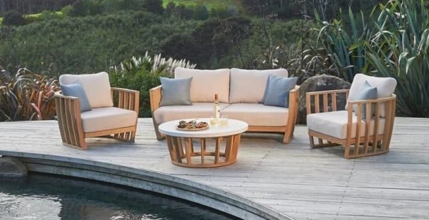 Настоящей изюминой поступления стала диванная группа Woodland, рассчитанная на 4 персоны и выполненная из эвкалипта. Комплект в светло-бежевом оттенке с красивым контрастом деревянных рам имеет современный и неподвластный времени дизайн. Это идеальный выбор для любого сада, патио, террасы или зимнего сада. Изготовленный из высококачественного эвкалипта, набор Woodland прочен и долговечен, а толстые подушки из олефина сохранят свою форму и не испортятся со временем. Журнальный столик имеет толстую столешницу из керамики Terrazzo, износостойкую и легко чистящуюся. Woodland поставляется с 4 элегантными декоративными подушками цвета морской волны, которые дополнят Ваш потрясающий комплект для отдыха.