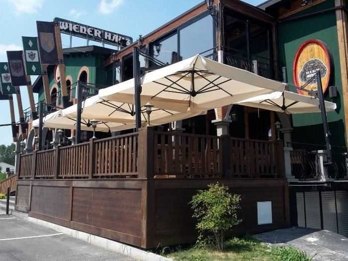 Модели Napoli Braccio, Palladio Braccio, Torino Braccio, Leonardo Braccio - профессиональные зонты с боковой опорой, выполненной из металла. Различные размеры и конфигурации позволят Вам подобрать модель по своему предпочтению. В моделях Torino и Palladio каркас и спицы выполнены с имитацией дерева ироко. В результате Вы получаете красоту и эстетику натурального дерева, силу и прочность металла!