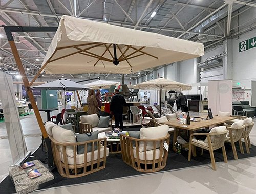 Не обошли вниманием посетители и зонты: Scolaro с боковой опорой и THEUMBRELA SEMSIYE EVI с центральной. Высокая ветроустойчивость, вариативность размерного ряда, качественные материалы - все это позволяет использовать профессиональные зонты на любых открытых пространствах коммерческого и частного назначения. Любимой фотозоной стала модель Avocado Boho, недаром зонты с плетением купола в технике макраме или крючком можно встретить на самых модных курортах, островах и Французской Ривьере.
