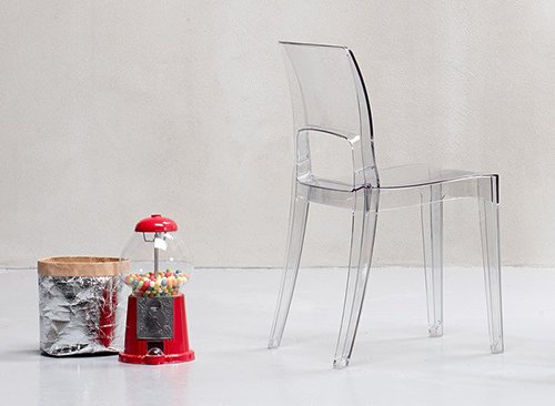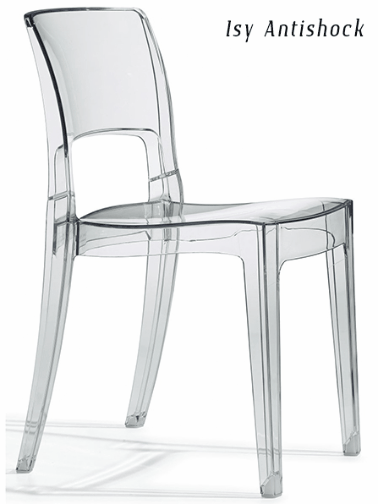 Прозрачные стулья Isy Antishock, стулья и кресла Vanity, барные и полубарные стулья Igloo выполнены из прочного поликарбоната. Элегантные прозрачные формы придают интерьеру уникальный вид, зрительно расширяя свободное пространство и отлично сочетаясь с другими материалами в интерьере.