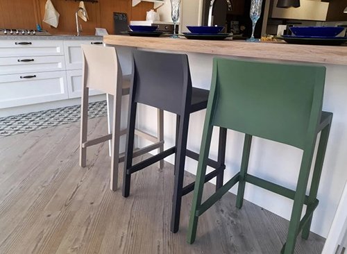 Пластиковые полубарные и барные стулья коллекции Kate выполнены из стеклопластика, окрашенного в массе, а значит стулья не выцветают под воздействием солнца. Благодаря особой форме ножек было создано уникальное техническое решение, которое означает, что стулья исключительно стабильны.