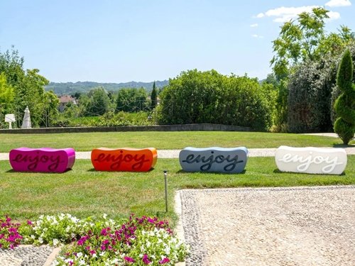Извилистая, эргономичная и симметричная, функциональная скульптура, символ счастья: Enjoy - это скамья, задуманная и изготовленная с двумя сиденьями, потому что радость должна быть общей! Скамейка Enjoy универсальна, готова воплотить свое стремление к радости жизни как в помещении, так и на открытом воздухе.