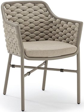 Уникальные кресла Torino, разработанные для использования на свежем воздухе, сочетают в себе эргономичный стильный корпус и крепкий алюминиевый каркас. Этот металл является одним из наиболее коррозионно-стойких металлов. Его покрытие выполняется с помощью порошковой краски, которая образует защитный слой для применения на улице. Плетение кресел выполняется толстым канатом роупом – синтетическим материалом, устойчивым к атмосферным воздействиям.