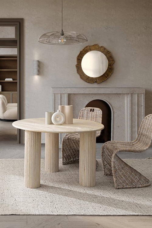 Обеденные столы и кофейные столики Orlando отличаются своим дизайном в японском стиле. Модели с сильным характером и четкой индивидуальностью представлены с четырьмя ножками из полукруглых плоских профилей и овальными столешницами. Столы полностью изготавливаются из прочной и качественной белой древесины манго. Коллекция добавит в интерьеры уникальность и динамизм.