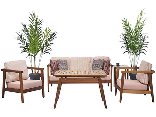 По-настоящему роскошный отдых на террасе или в саду помогут создать комплекты Rodos и Likya. Каждый элемент комплектов, включая трехместный диван, два уютных кресла и стильный кофейный столик, выполнен из прочного и элегантного ироко. Наборы идеально подходят для создания уютного места для отдыха, наслаждения природой и разговоров с друзьями или семьей на свежем воздухе. Мягкие подушки на диване и креслах придают дополнительный комфорт, а каркас из ироко обеспечивает надежную поддержку и стабильность.