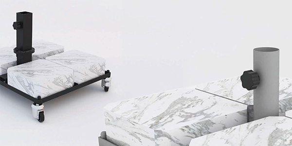 Модели комплектуются металлической базой. Вы также сможете приобрести столики к зонтам и шезлонги.