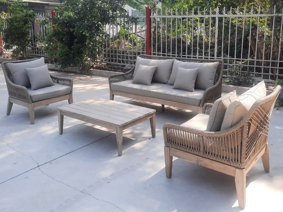 Деревянные наборы лаунж мебели Ravona создают уникальную атмосферу в зонах отдыха. Комбинация роупа, подушек бежевого цвета и натурального оттенка древесины акации придает комплектам необычайно красивый и очаровательный внешний вид.