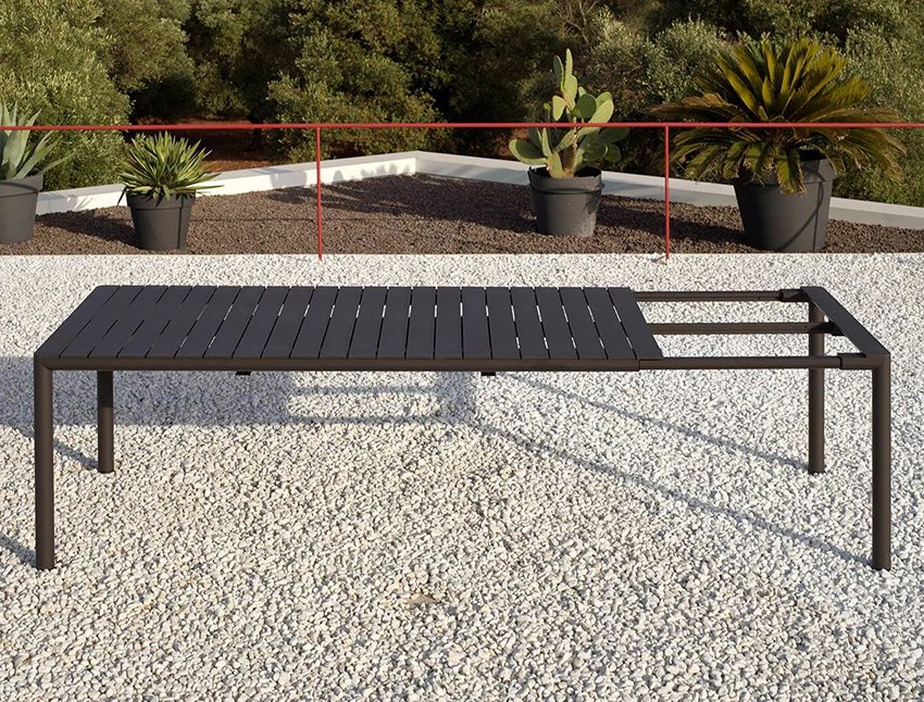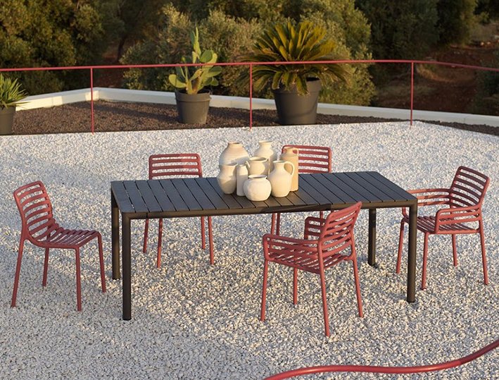 Алюминиевый каркас Tevere комбинируется со столешницей и стульями из перерабатываемого пластика. Столешница отличается максимальной износостойкостью и устойчивостью к ударам и царапинам. Интуитивно понятная система выдвижения стола позволяет удлинять его, а эргономичный дизайн обеспечивает максимальный комфорт в использовании.