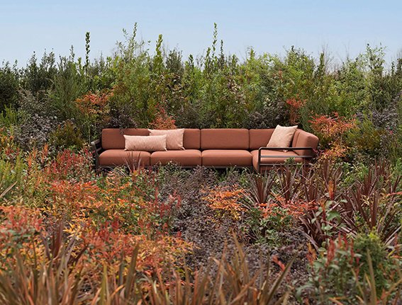 Одной из представленных новинок является Maximo - модульный диван с каркасом из регенерированного пластика и тканей с высоким содержанием переработанных компонентов, который, начиная с одного модуля кресла, позволяет быстро и легко создавать бесчисленные конфигурации благодаря системе крепления спинки и подлокотников.