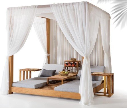 Коллекция Storm - это приглашение к релаксации и наслаждению жизнью. Двойная структура, сочетающая металл и дерево, создает гармоничное чередование линий и материалов, добавляя изысканности и современности экстерьеру. Storm включает элегантный лаунж комплект, стильный обеденный комплект мебели, роскошный бунгало-шатер с лежаками и диван-качели для релаксации. Каркас шатра с лежаками из ценного дерева ироко создает ощущение надежности и природной красоты. Разделенные зоны лежаков с регулируемыми спинками позволяют каждому найти идеальное положение для отдыха.