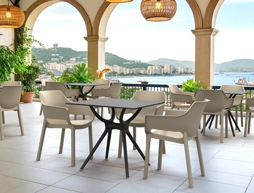 - Универсальность: Благодаря сбалансированному дизайну и надежной конструкции, мебель органично интегрируется в интерьеры ресторанов, гостиных и на открытые веранды.