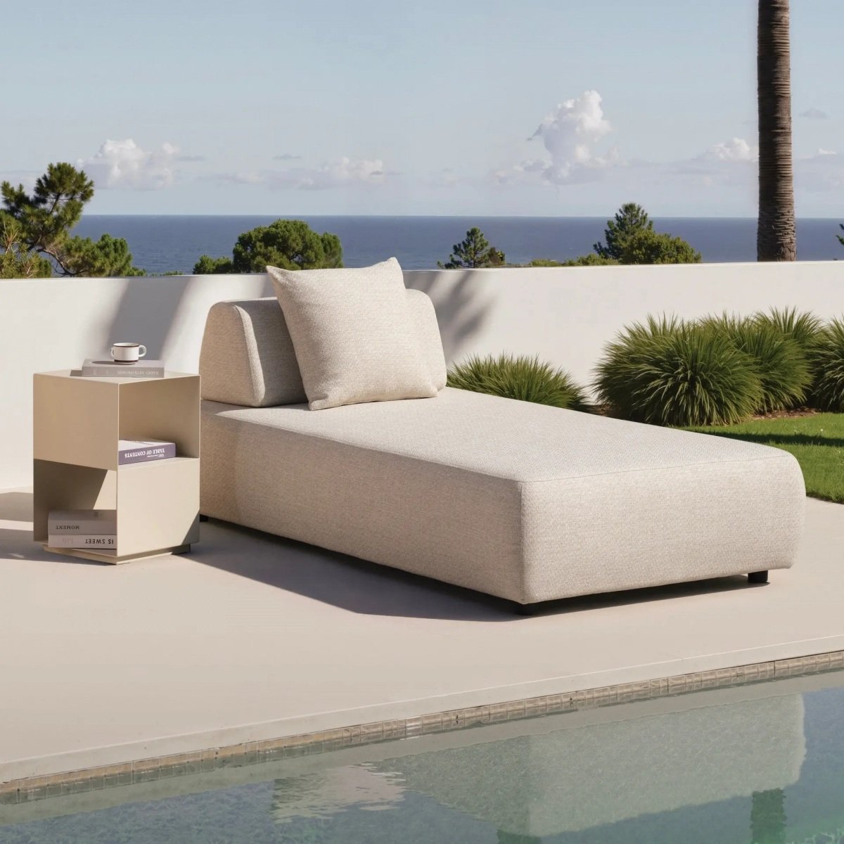 Мягкий лежак Geometry - минималистичный шезлонг для максимального релакса. Алюминиевое основание дополнено матрасом из быстросохнущего поролона в чехле из влагостойкого олефина. Продуманная форма и подушка позволяют принять самое удобное положение для отдыха у бассейна или в саду.