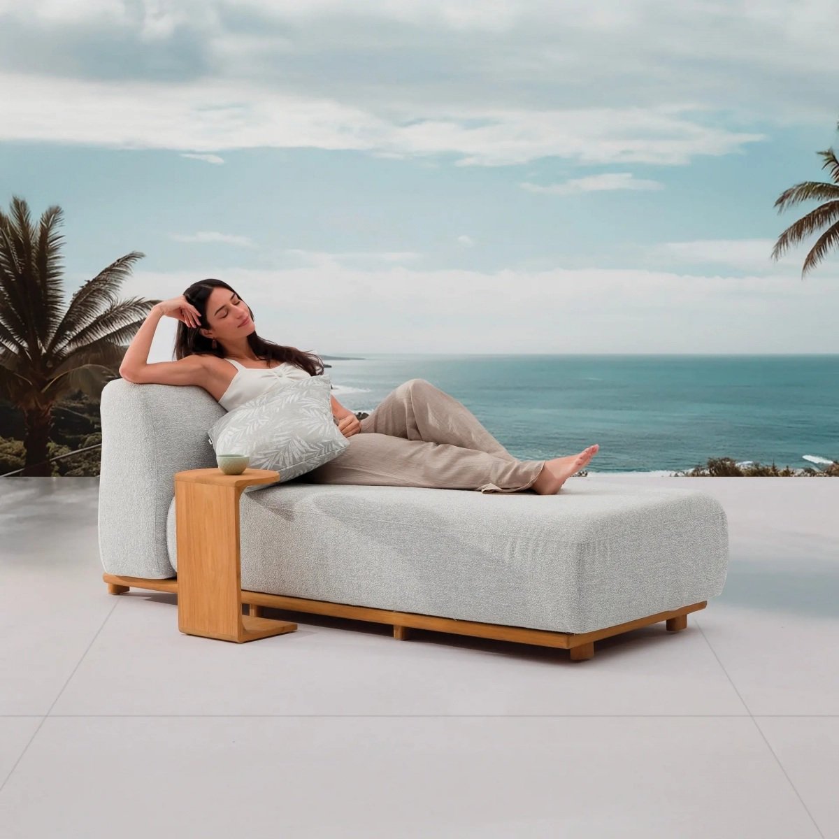 Модульная коллекция Rule Teak - гармония природного тика и технологичных материалов. Прочный каркас скрывает легкий алюминий, а объемные подушки из быстросохнущего пеноматериала и олефина не боятся влаги. Свобода комбинирования модулей позволяет создать свой идеальный островок спокойствия как в доме, так и под открытым небом.