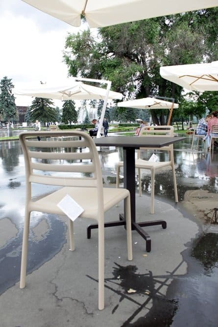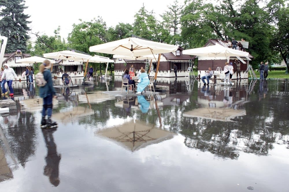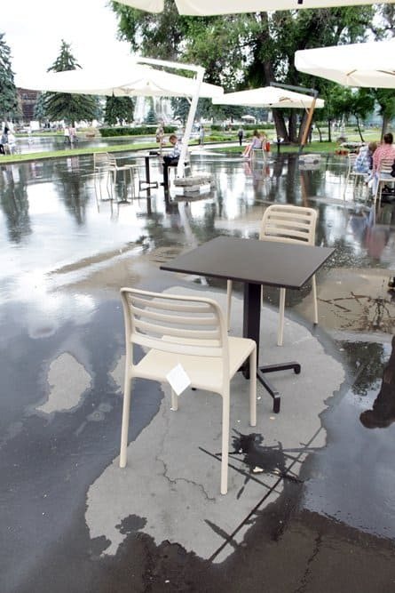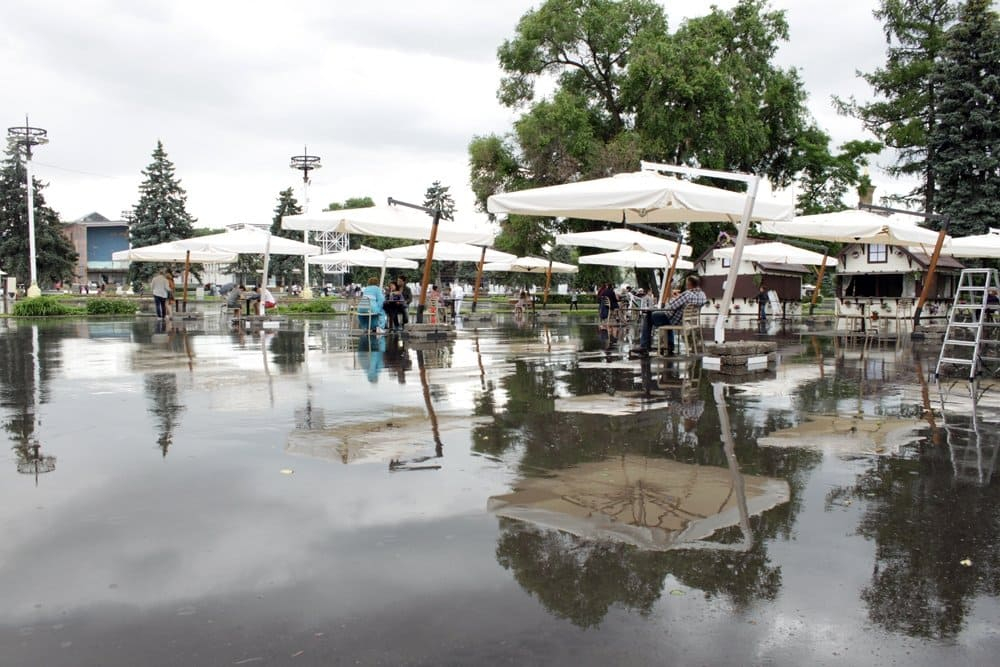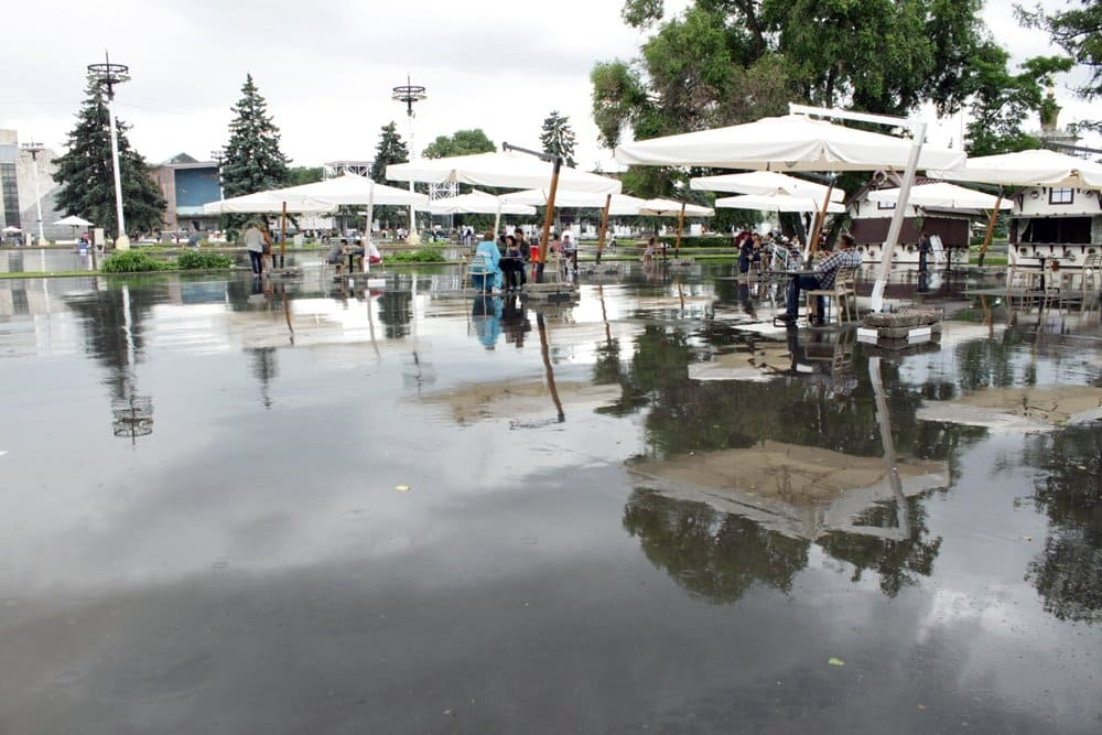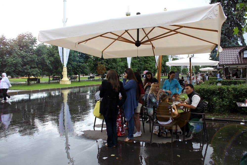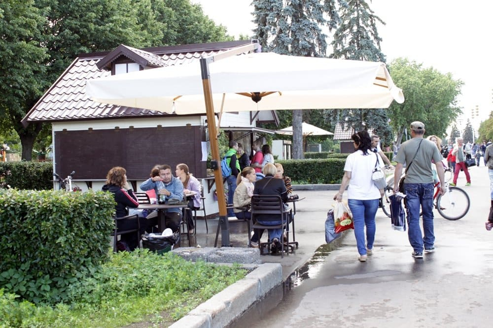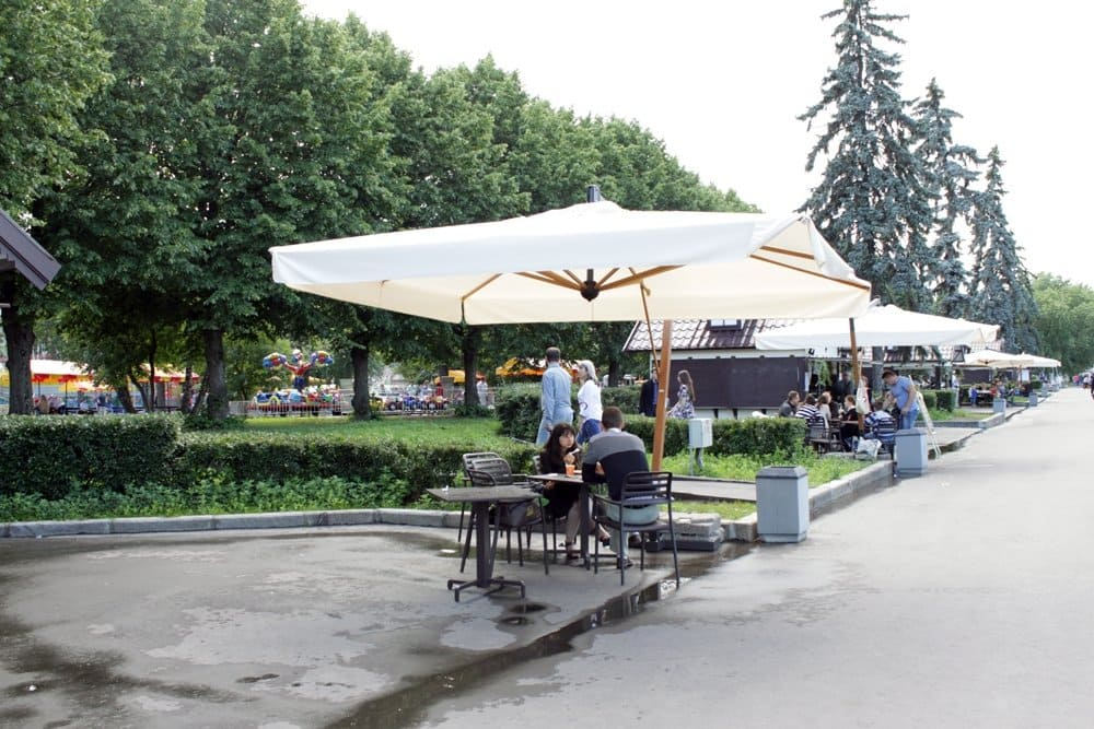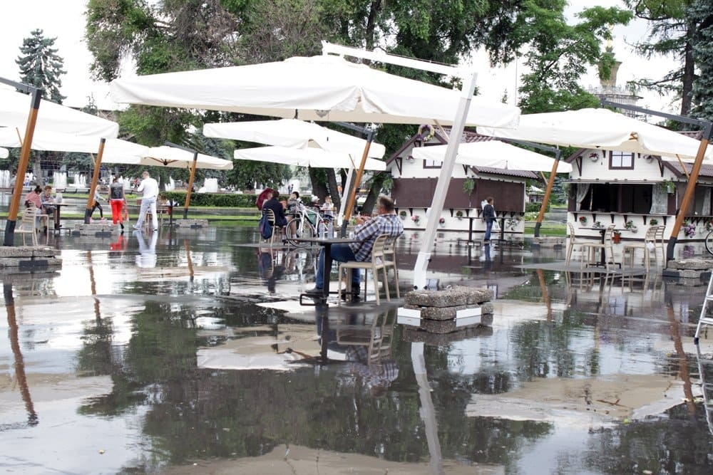 В тот день была непогода, но это нисколько не омрачало настроение посетителей, т.к. частично ВВЦ приобрел образ маленькой Европы, ведь по всей территории уютно расположились летние мини-кафе в итальянском стиле.