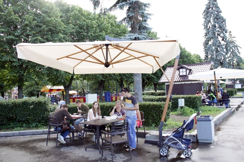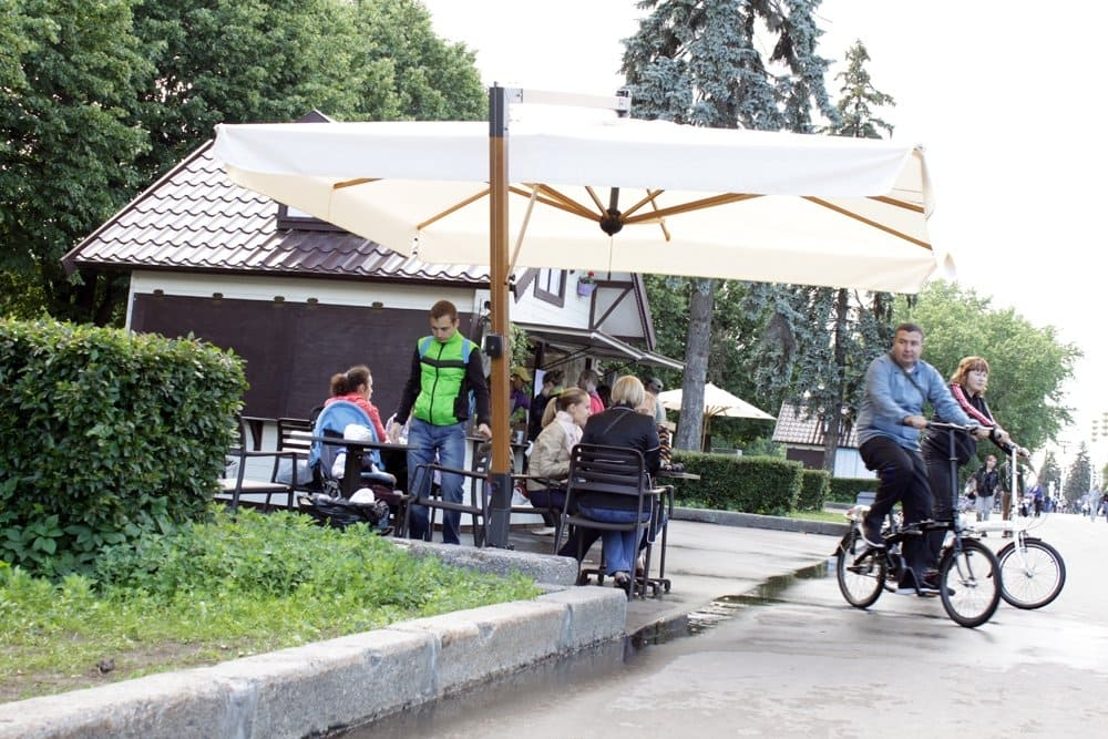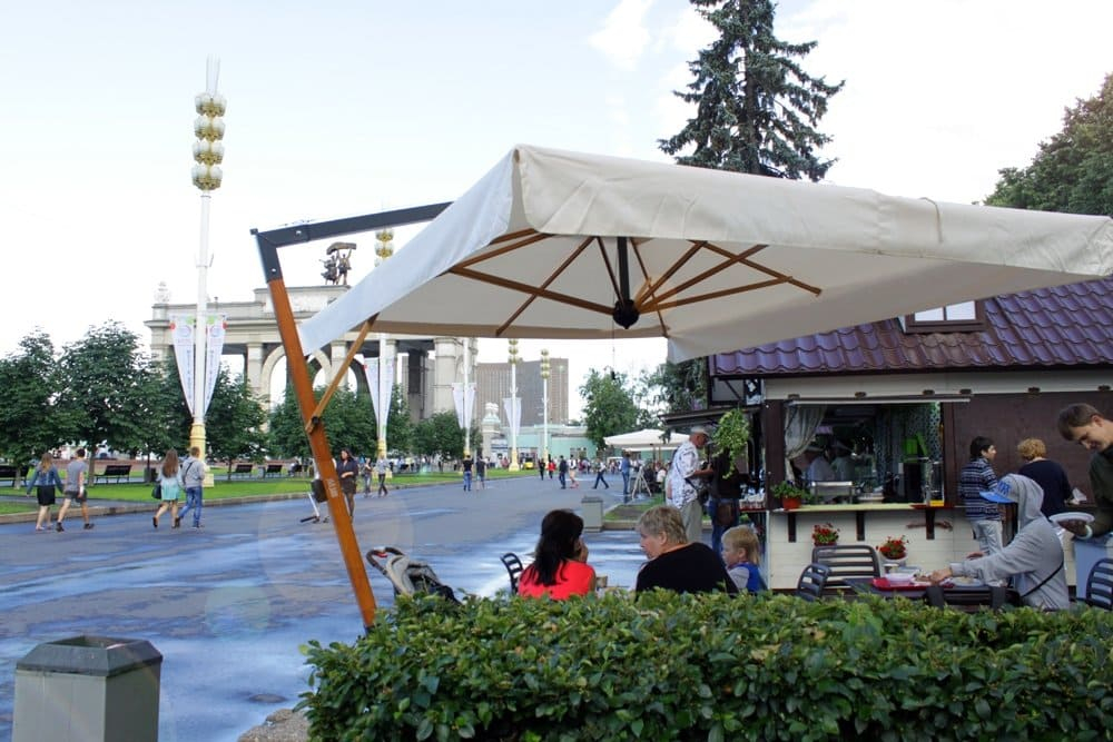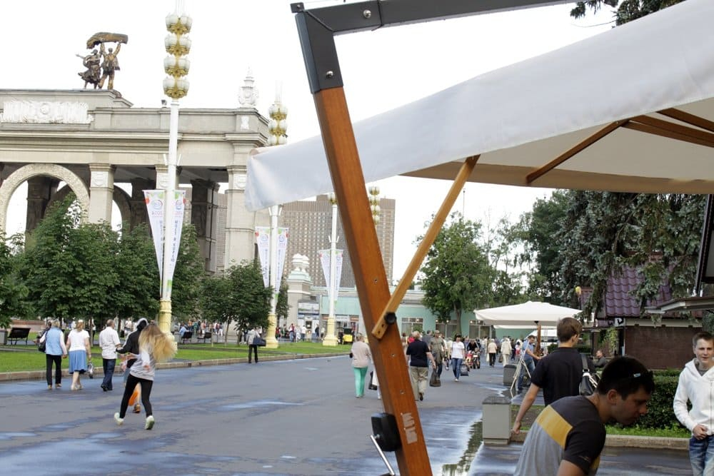 В 2014 году наши уличные зонты и мебель для кафе были выбраны для празднования Дня России, которое проходило на ВВЦ.