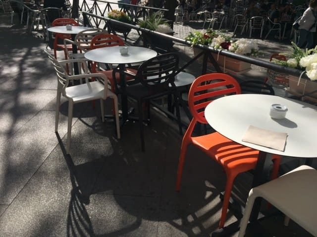 Меню включает как рыбную начинку, так и шоколадную, потому что завтрак, обед и ужин - это всегда подходящее время, чтобы съесть "кросантино". Пока вы пробуете это маленькое лакомство, вы можете сесть на табуреты Natural Divo и Natural Gim или насладиться патио, сидя на стульях Cokka и Top Gio за кросс-столами SCAB Design.