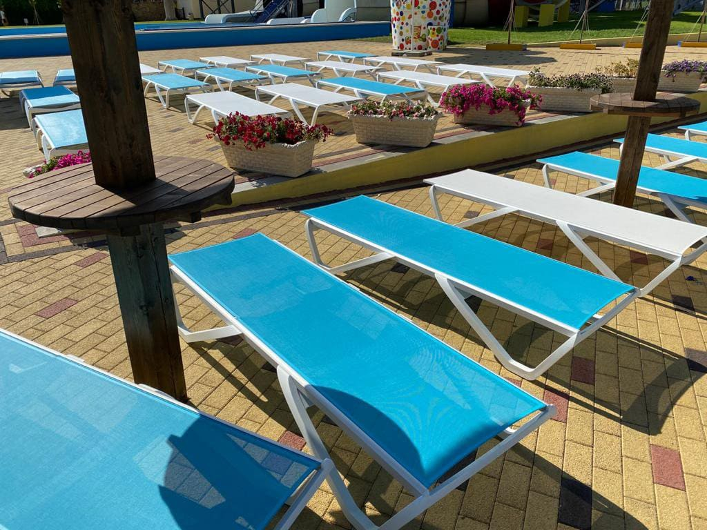 1. Шезлонг-лежак металлический Wave, цвет: белый, бирюзовый, фабрики PAPATYA.