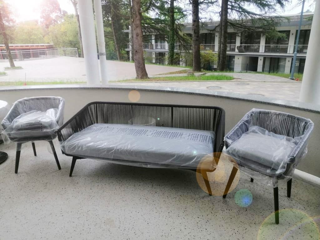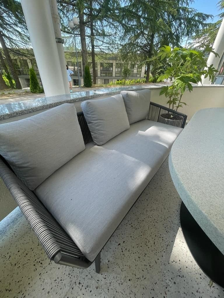 4. Диван трехместный плетеный с подушками Diva фабрики Felicita.